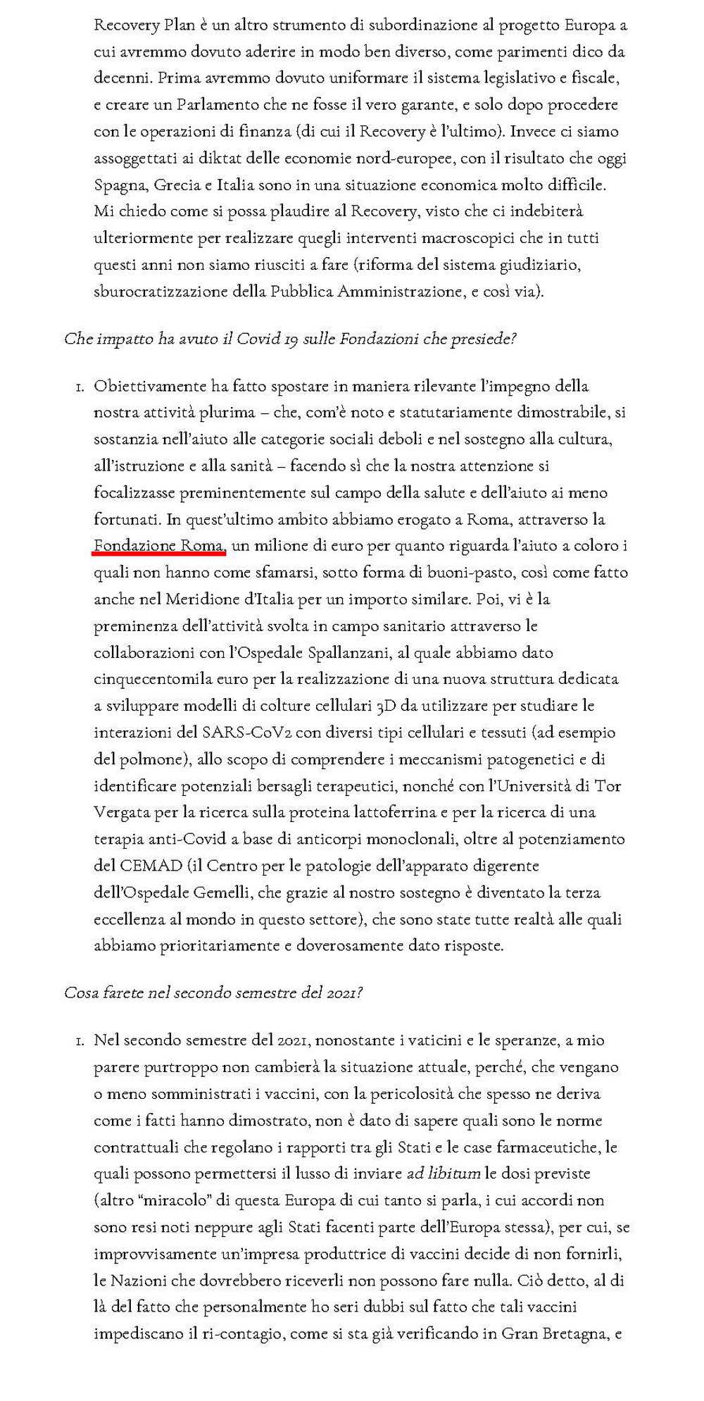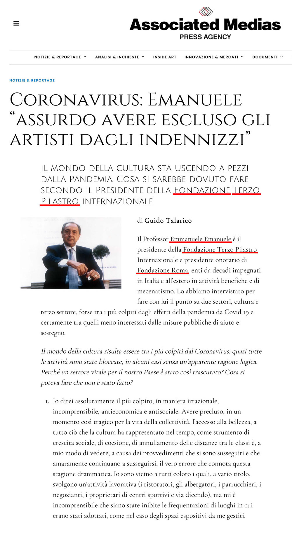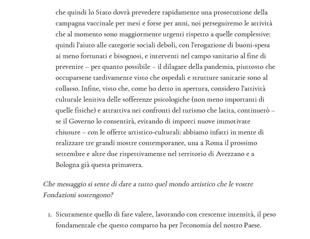 Il mondo della cultura sta uscendo a pezzi dalla pandemia. Cosa si sarebbe dovuto fare secondo il Presidente della Fondazione Terzo Pilastro – Internazionale