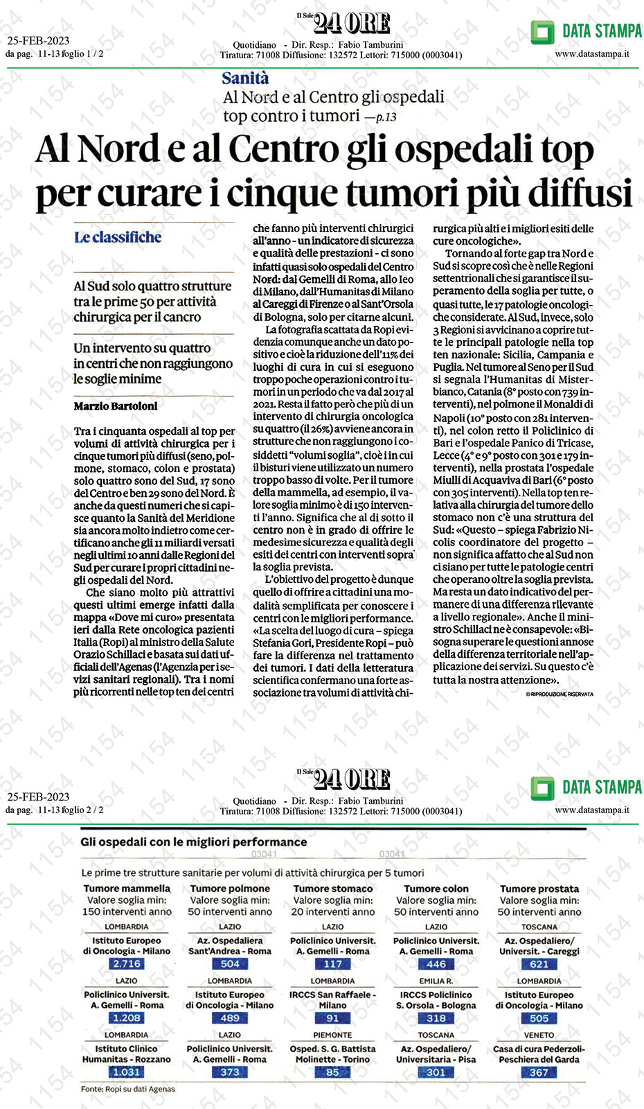 Nuovo primato per il Gemelli e per il CEMAD. Nella recente indagine presentata al ministro della Salute Orazio Schillaci dall’Agenzia per i servizi sanitari regionali riferita ai 5 tumori più diffusi, il Gemelli, grazie al CEMAD, Centro Malattie dell’Apparato Digerente, struttura nata 6 anni fa grazie ad un’idea del Prof. Antonio Gasbarrini, e subito sposata dal Prof. Avv. Emmanuele F.M. Emanuele, all’epoca Presidente della Fondazione Roma, che ne ha promosso e favorito l’allestimento e l’aggiornamento con apparecchiature di altissima e sofisticata tecnologia, è risultato primo in Italia per volume di pazienti trattati per le patologie oncologiche del colon e dello stomaco. E’ l’ennesima conferma di quanto la sinergia tra la Fondazione Roma ed il Policlinico Gemelli sia efficace e produca risultati di eccellenza, e meriti, dunque, di essere coltivata anche per il futuro, come sinceramente auspica il Prof. Emanuele, oggi Presidente Onorario della Fondazione Roma.